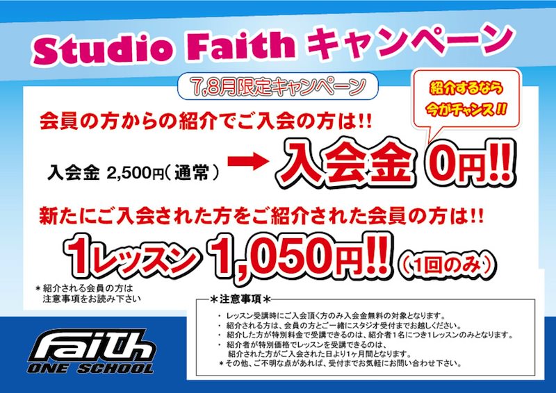 - レッスン受講時にご入会頂く方のみ入会金無料の対象となります。