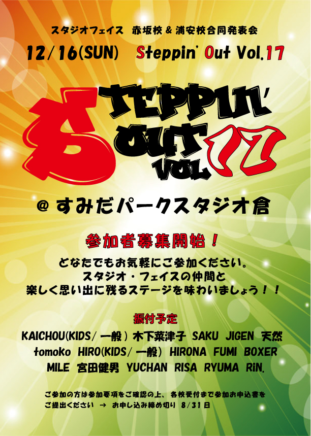 スタジオ・フェイス発表会「STEPPIN’ OUT vol 17」が開催決定!